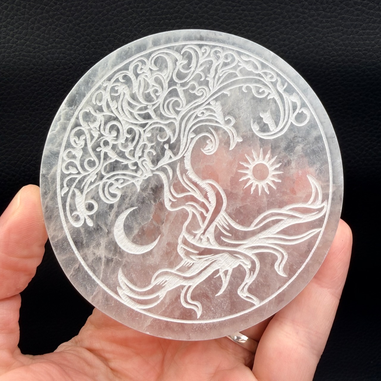 Taille de la Plaque de Rechargement Arbre de Vie en Sélénite : 10 cm de diamètre.