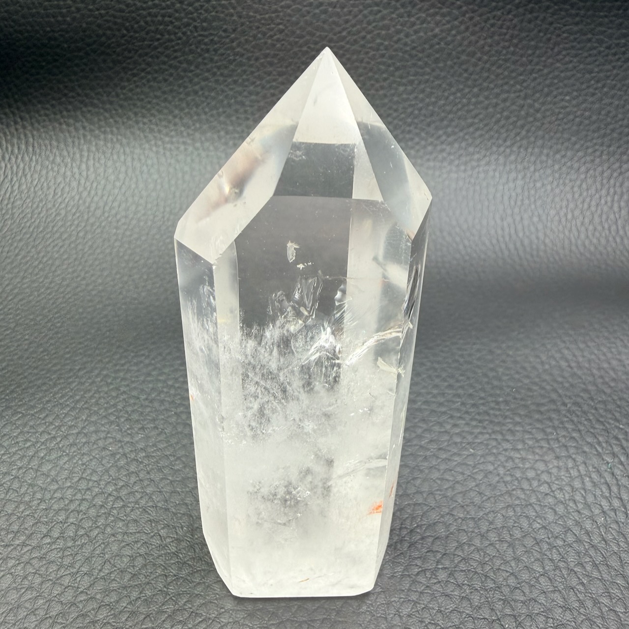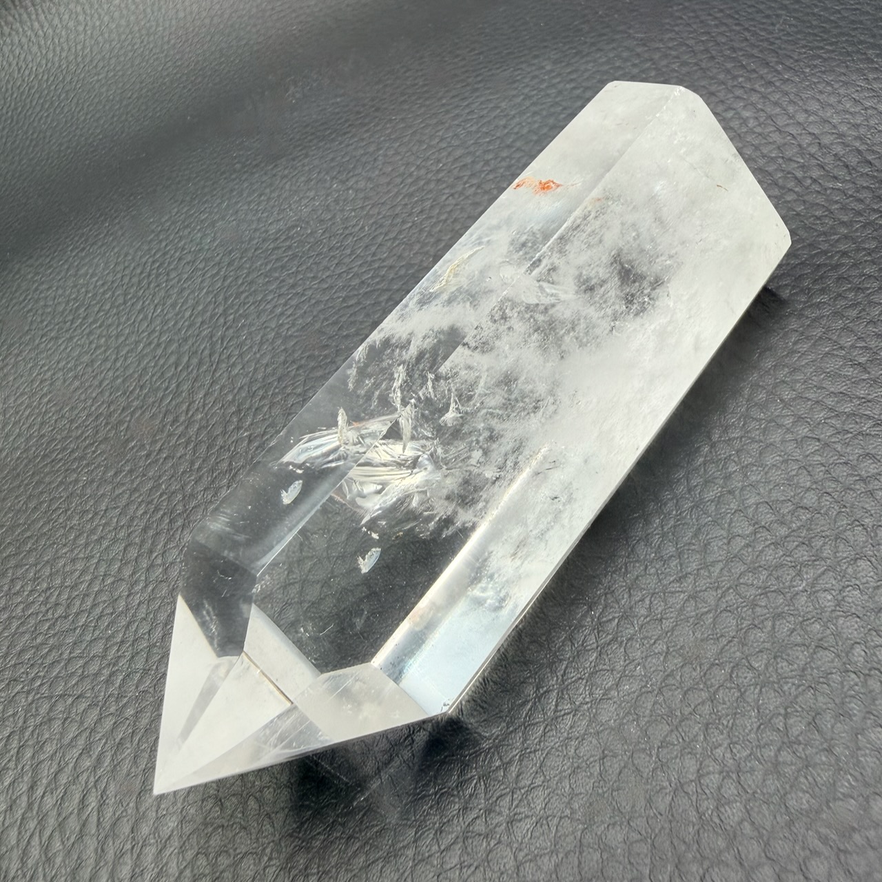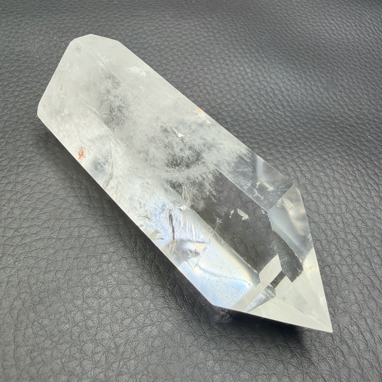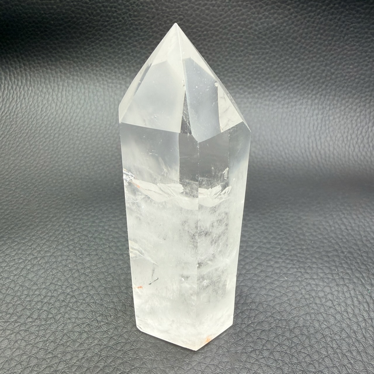 Taille du prisme de cristal de roche 9,8 cm sur 3,6 cm sur 2,7 cm.