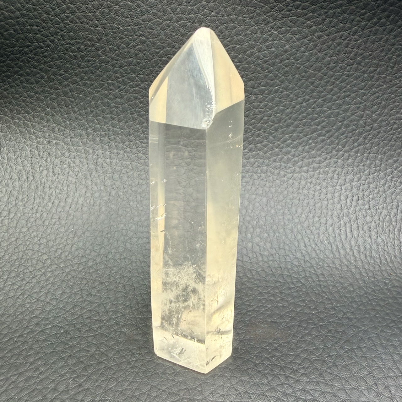 Taille du prisme de cristal de roche 8,1 cm sur 2,8 cm sur 2,1 cm.