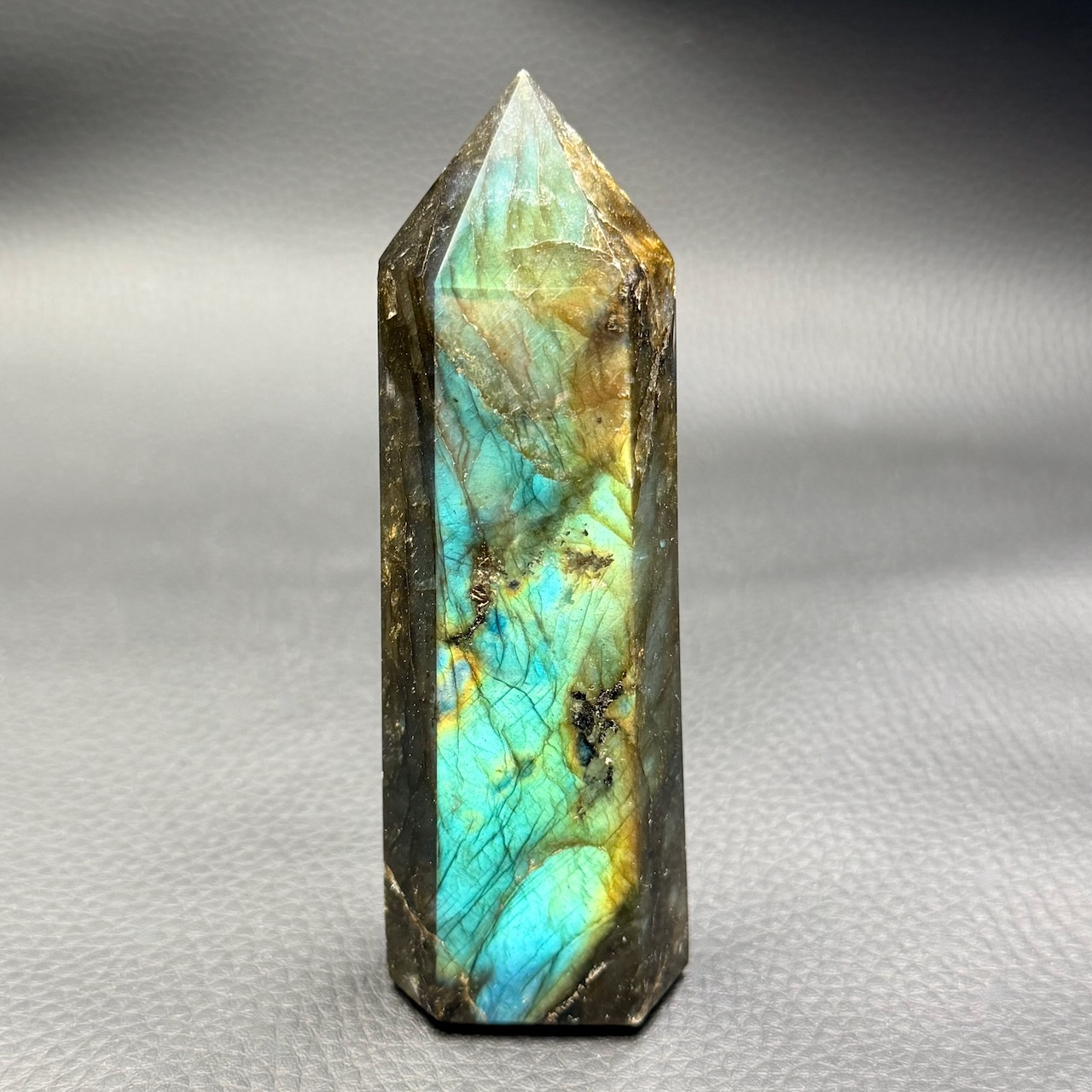 Sa forme agit comme un générateur énergétique, favorisant une circulation directionnelle des flux vibratoires. La labradorite agit comme une pierre de protection, de stabilisation et de régulation énergétique.