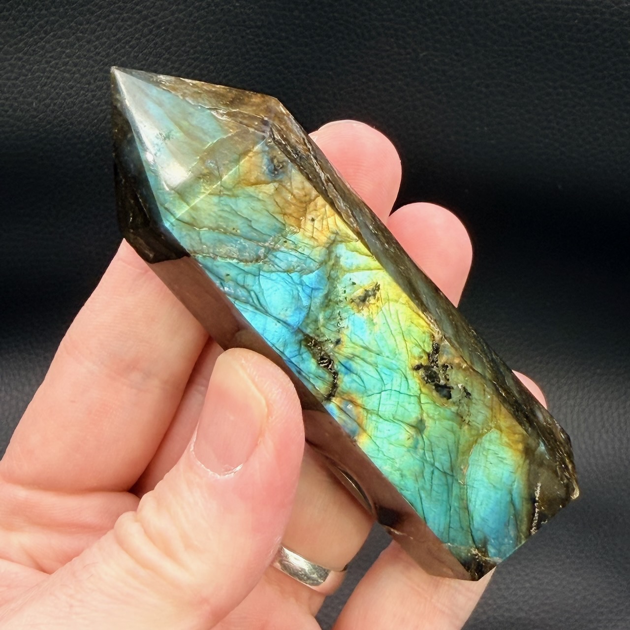 Un prisme de labradorite agit comme un point de convergence et de redistribution. Sa base reçoit les interactions énergétiques de l’environnement, tandis que ses faces et ses arêtes permettent leur canalisation et leur diffusion progressive. Cette organisation favorise une stabilisation énergétique locale.
