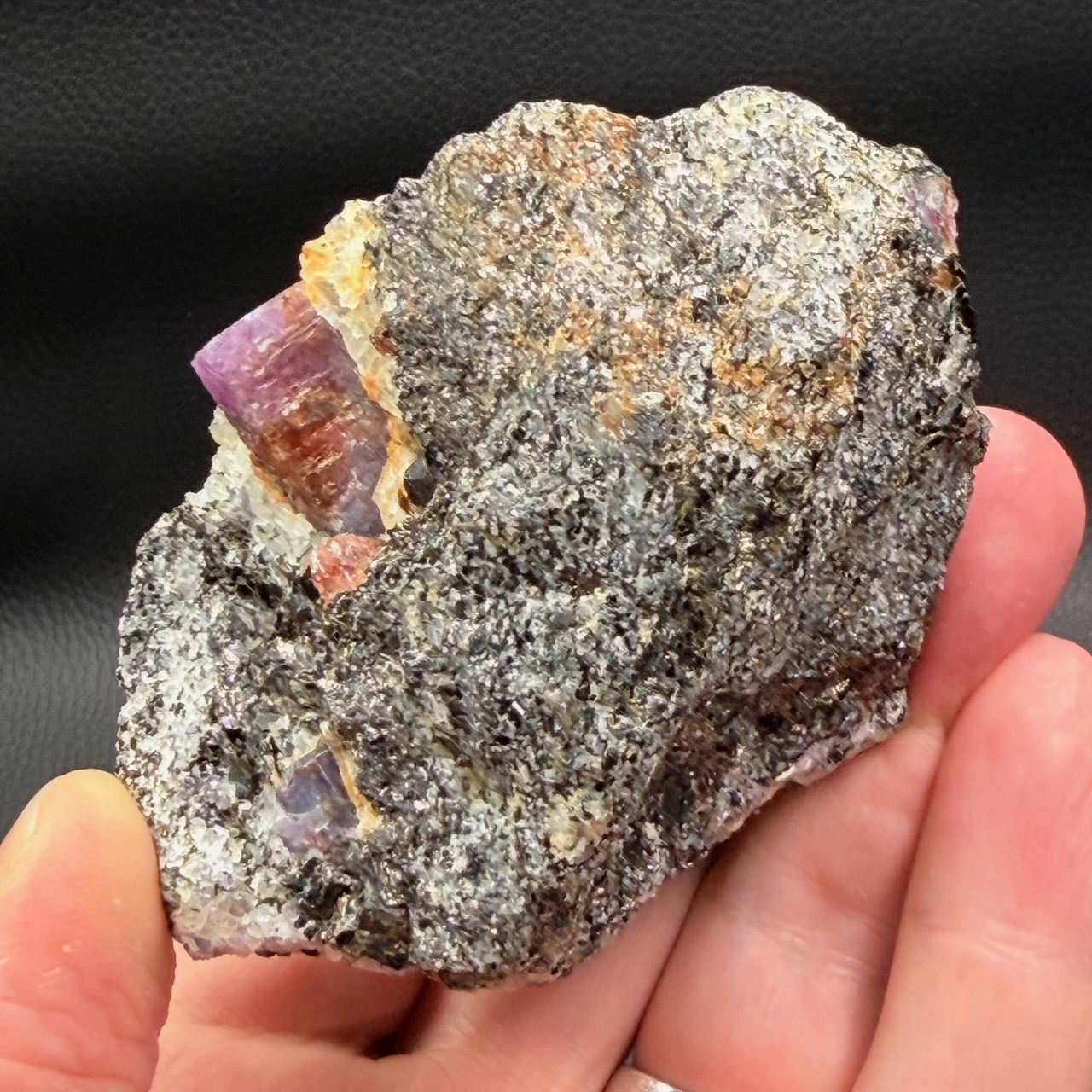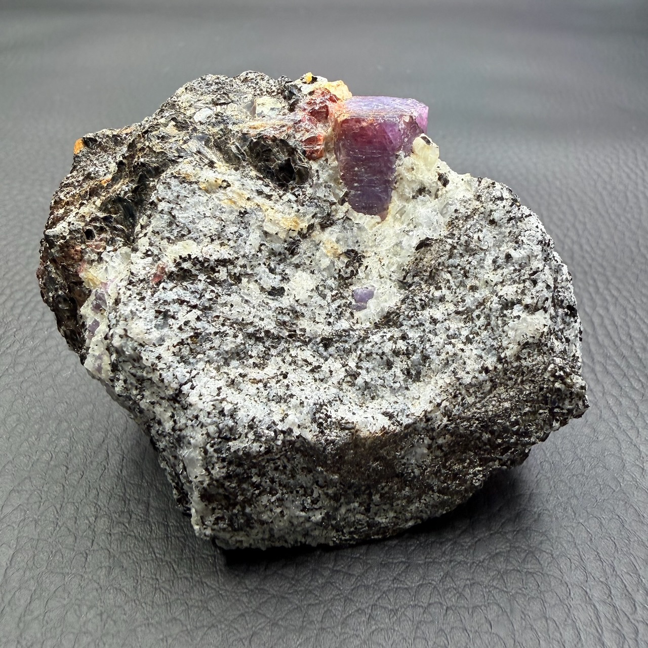 •Le jeu de lumière et de couleur offert par la combinaison de la biotite et des corindons
