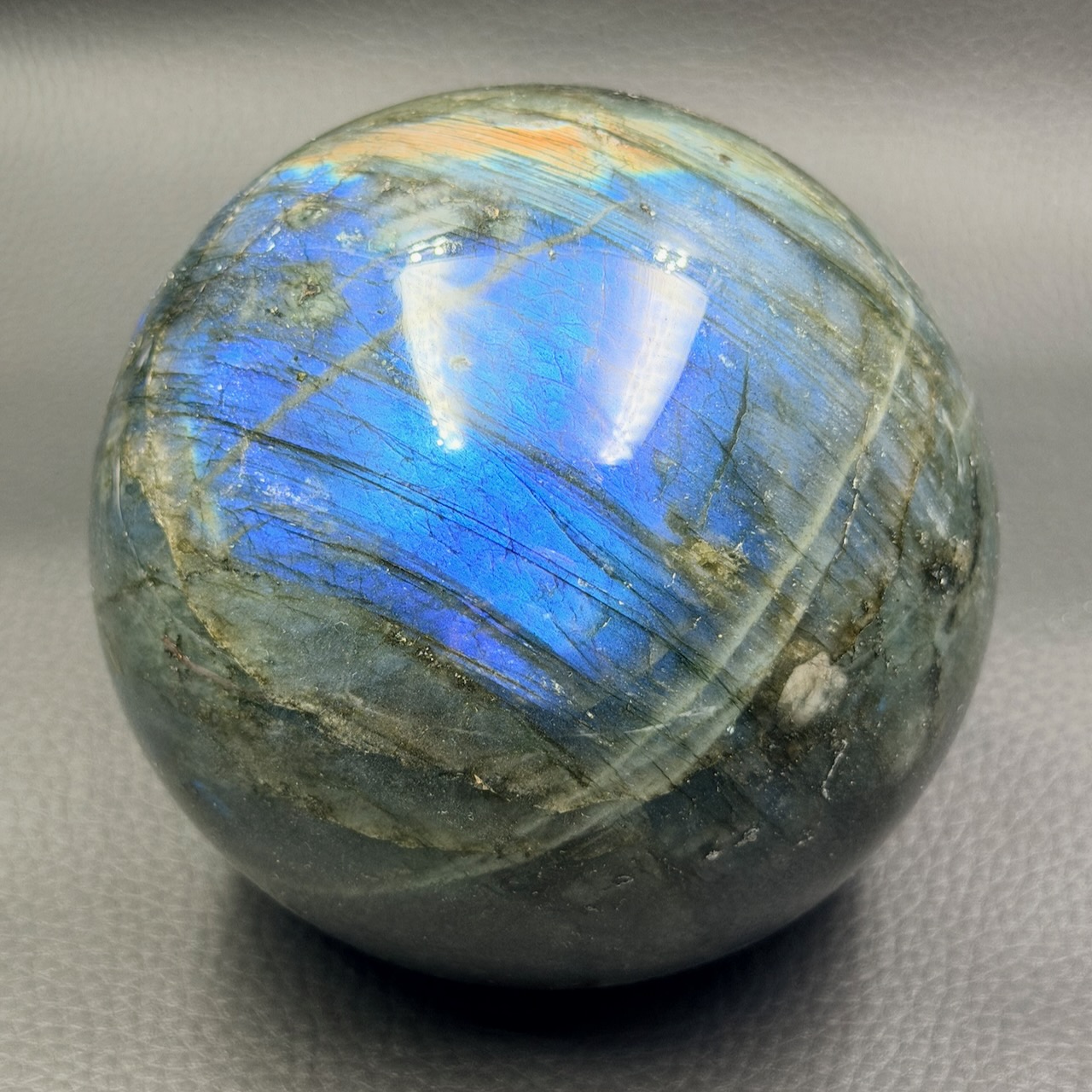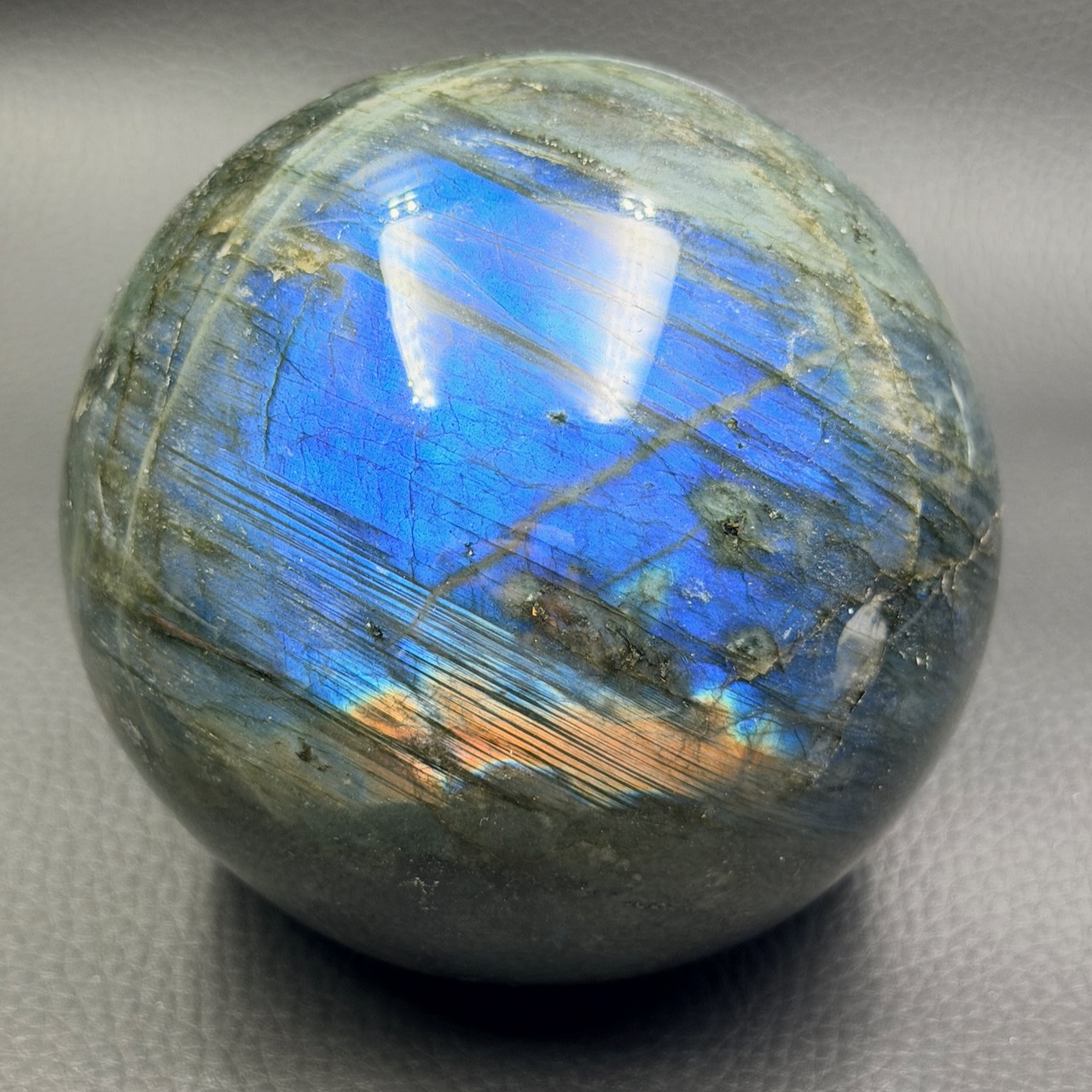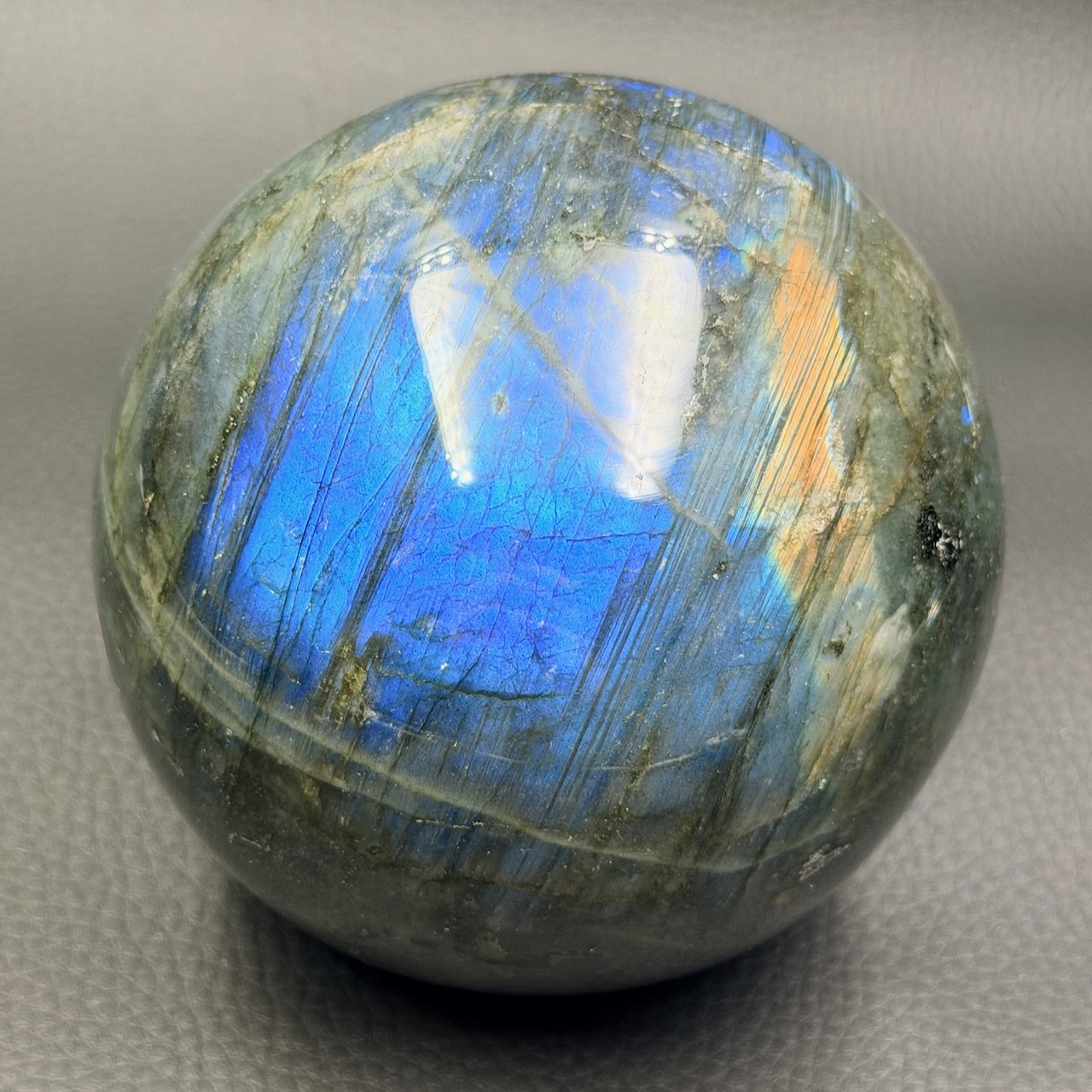 Diamètre de la sphère en Labradorite 9,5 cm.