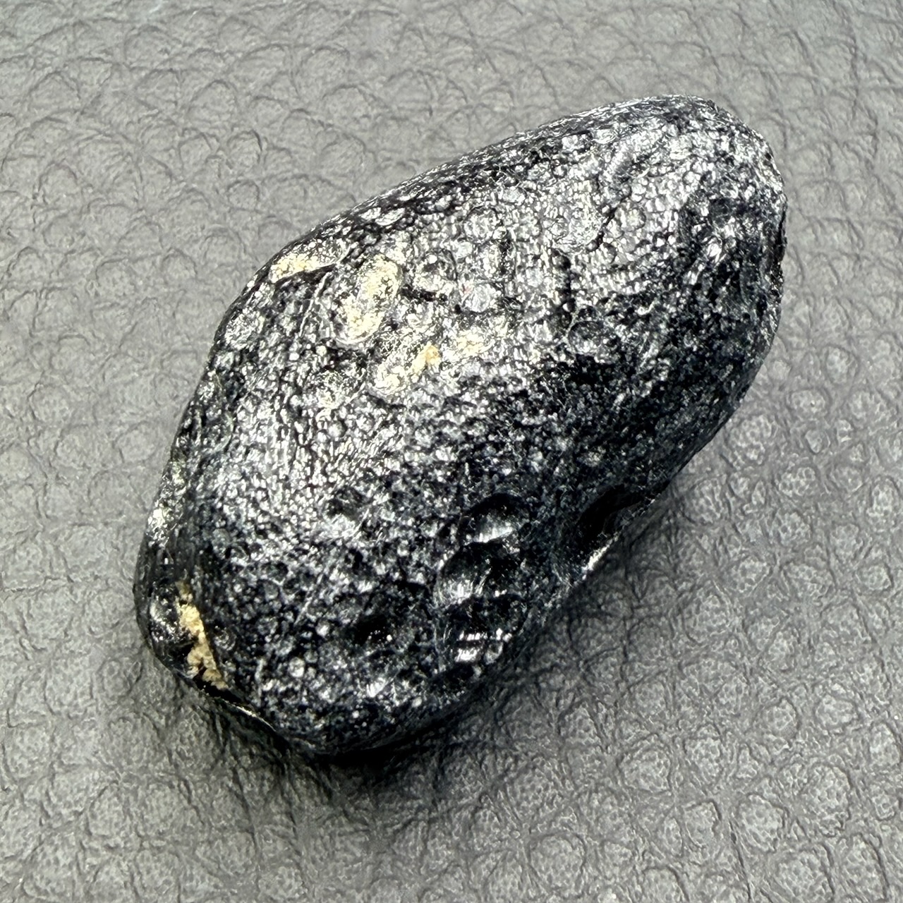 La structure vitreuse des tectites les rend très résistantes aux rayures et à l’érosion, même après des millions d’années. Leur surface peut être lisse ou légèrement texturée, avec des formes variées allant du sphérique à l’allongé, en fonction de la façon dont elles ont été projetées et refroidies lors de leur formation.