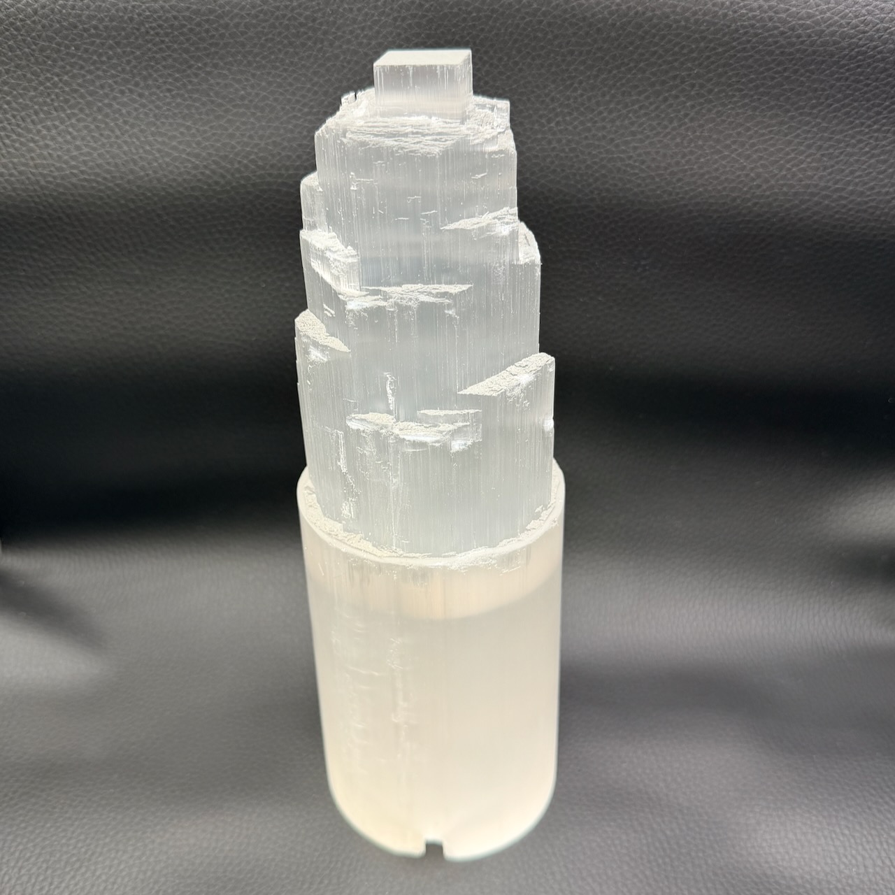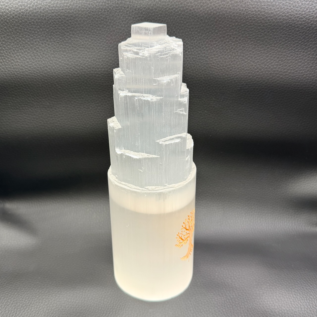 La tour peut également servir à recharger vos autres cristaux. Posez simplement vos bracelets ou vos petites pierres autour de la base de la tour pendant la nuit. La sélénite leur redonnera leur éclat vibratoire originel sans que vous ayez besoin d’utiliser de l’eau ou du sel.