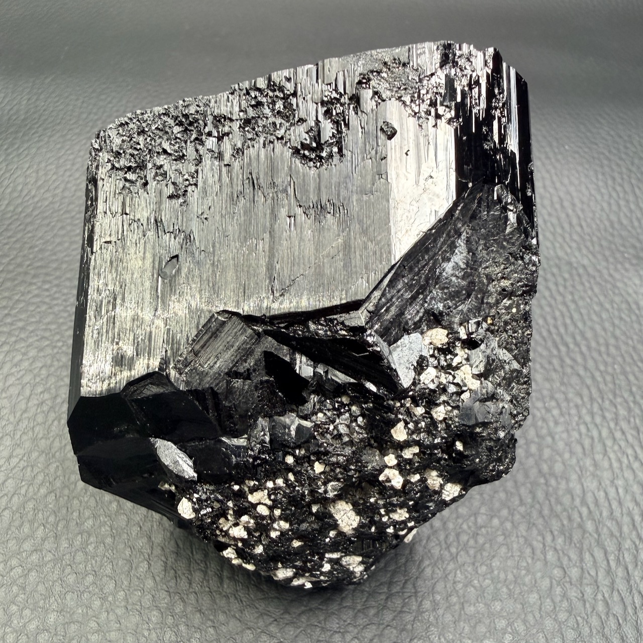 Les schorls de Namibie se distinguent par la netteté de ces structures. Les arêtes sont franches, les faces bien définies, et les terminaisons souvent intactes. Cette régularité morphologique témoigne d’un environnement de formation stable, sans chocs thermiques ou chimiques majeurs.