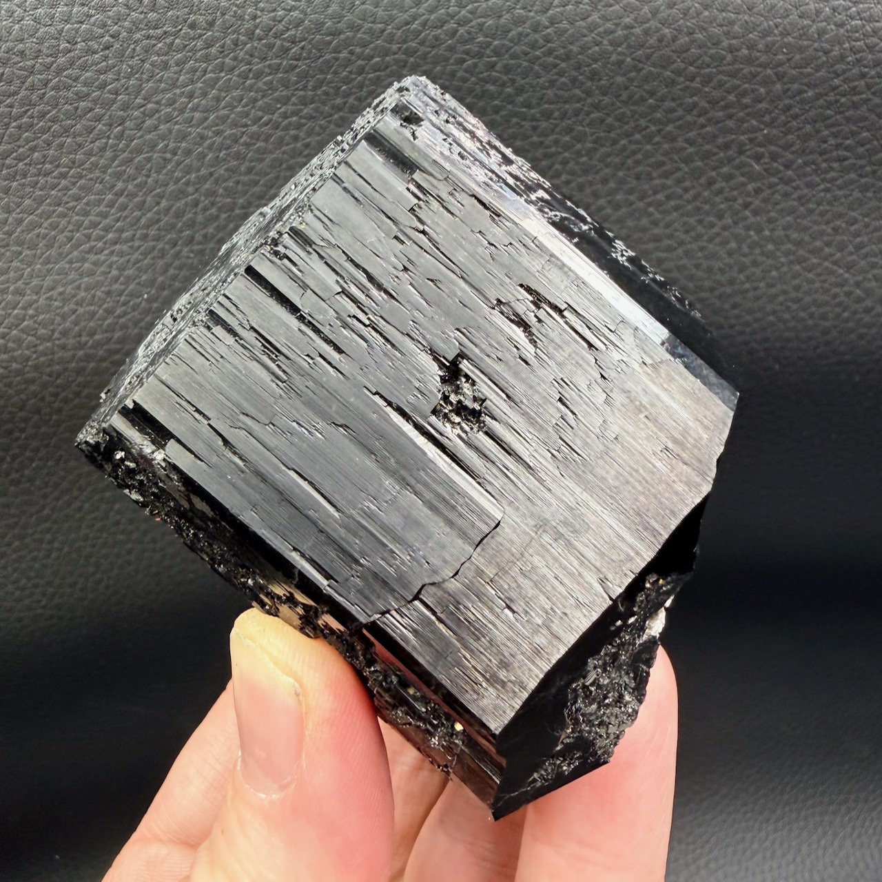 Avec une dureté comprise entre 7 et 7,5 sur l’échelle de Mohs, la tourmaline noire schorl est un minéral robuste. Elle résiste bien aux contraintes mécaniques et aux variations thermiques. Sa densité élevée, souvent comprise entre 3,1 et 3,3, renforce cette impression de masse compacte.