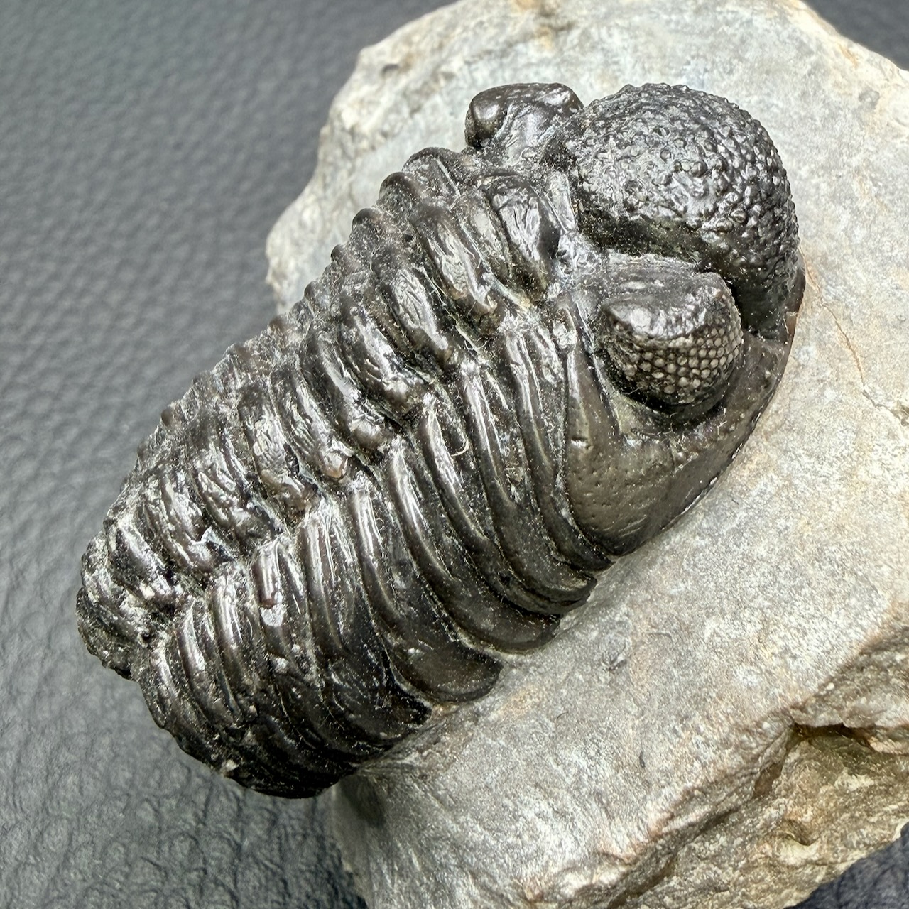Phacops : Ce genre de trilobites est particulièrement bien représenté au Maroc, notamment à travers l’espèce Phacops rana. Ces trilobites sont célèbres pour leurs grands yeux composés et leur capacité à s’enrouler pour se protéger des prédateurs.