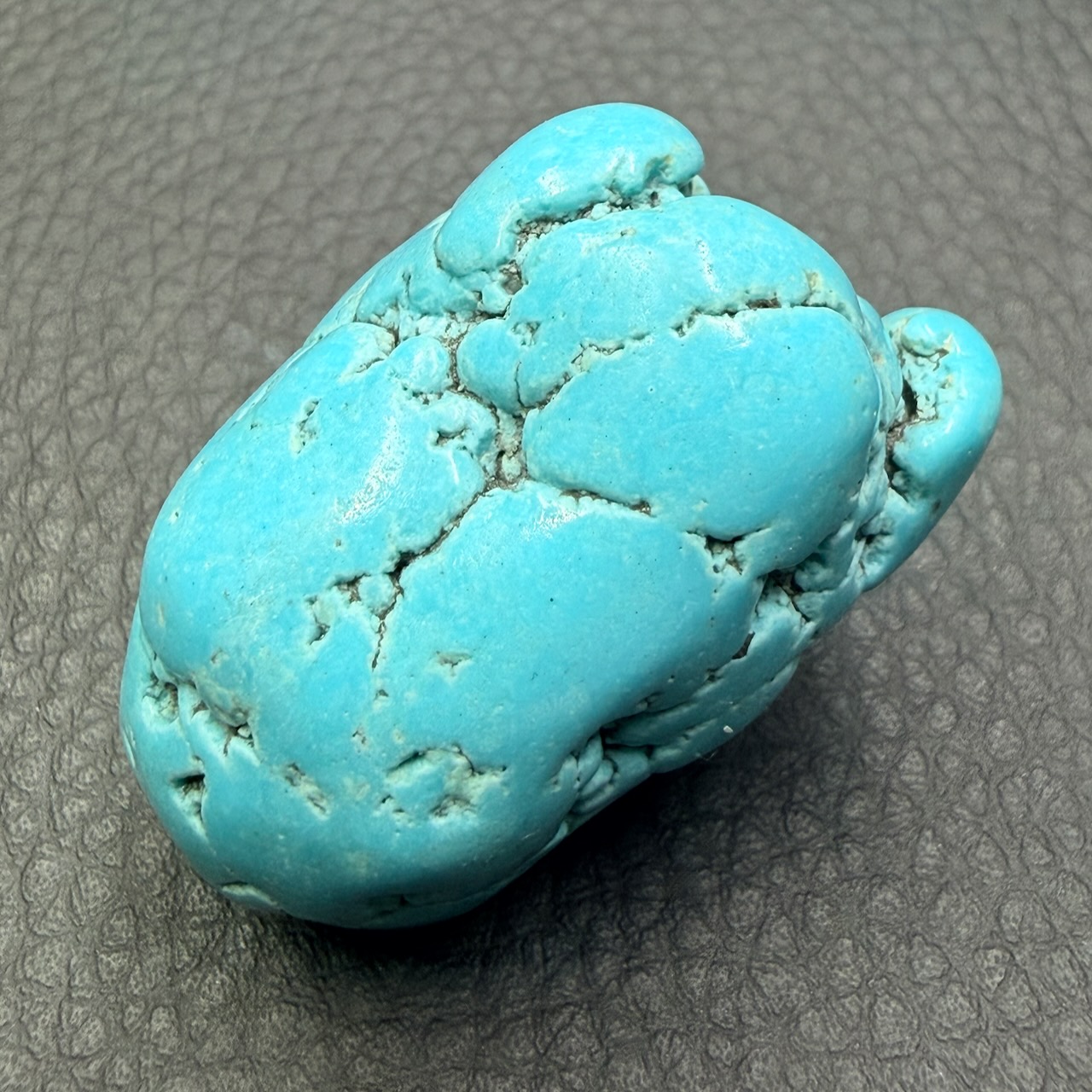 De plus, la turquoise est souvent marquée par des motifs appelés « matrices », qui sont des veines sombres ou noires issues de la roche-mère dans laquelle elle s’est formée. Ces motifs sont très appréciés pour le caractère authentique et naturel qu’ils ajoutent à chaque pierre.