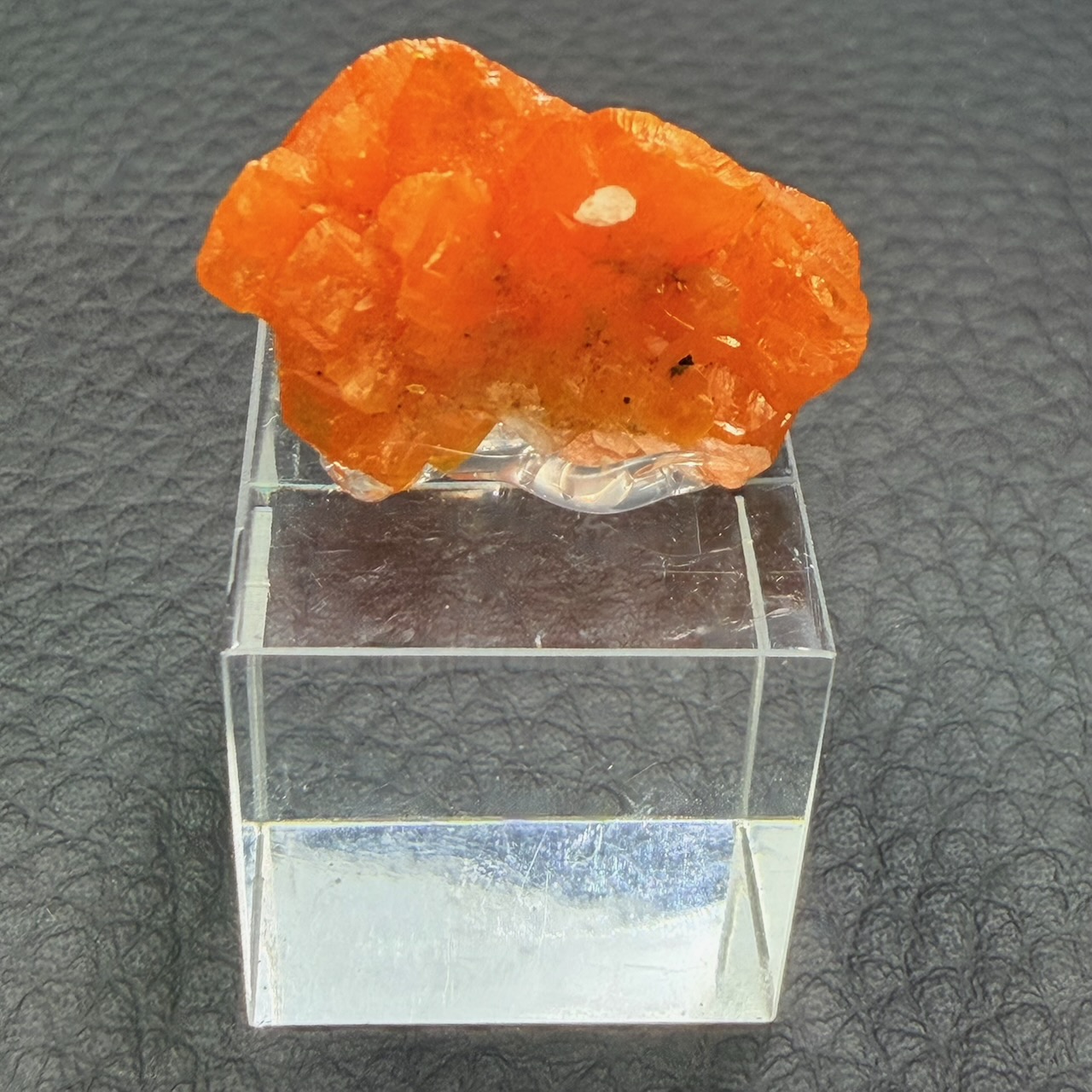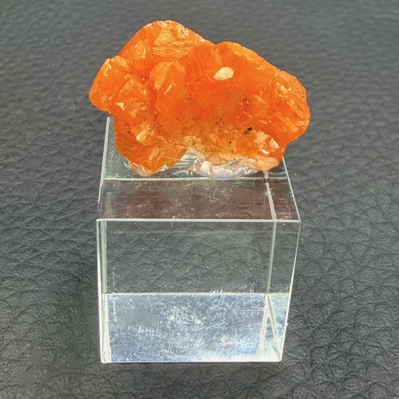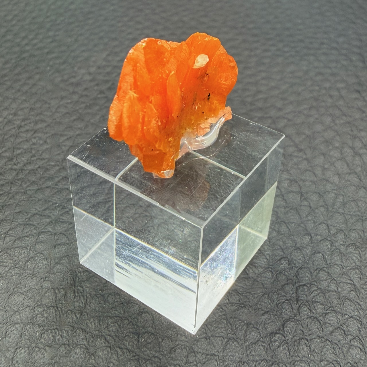 Taille du cristal de Wulfénite 1,4 cm sur 2,2 cm sur 0,5 cm.